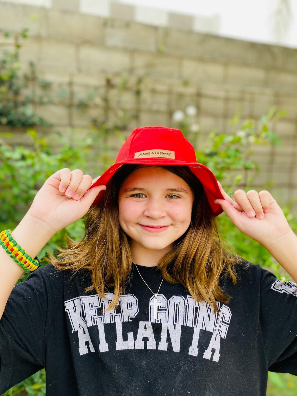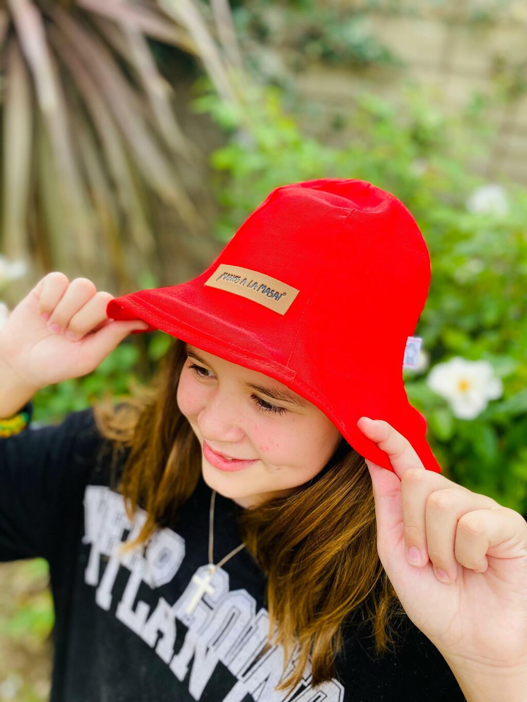 Sombrero multicolor de gabardina con etiqueta de cuero grabado.